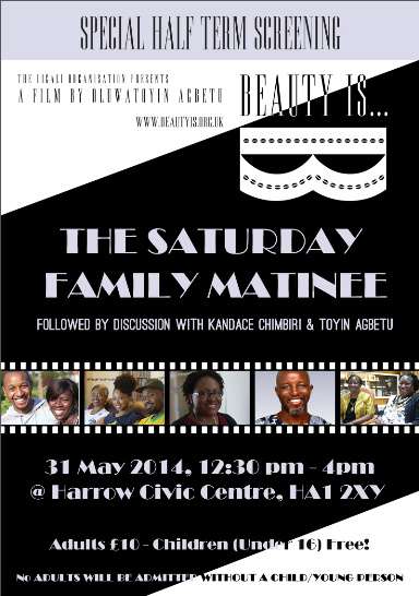 This special Half Term Family Matinee Screening of The film will be followed by a filmed family discussion facilitated by director Toyin Agbetu and author Kandace Chimbiri focused on a young persons perspective of beauty.