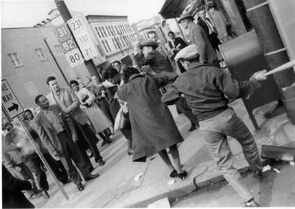 This image of a savage American mob attacking young African American women students occurred after the students were refused service in a cafeteria in Montgomery, Alabama 1960. African American Students Attacked